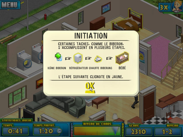 Nanny mania mettra vos talents de nounou à l’épreuve! Apprenez à jongler entre de multiples tâches et répondez aux besoins de la famille qui vous a engagé. La maison doit être impeccable, les enfants doivent être surveillés et le dîner doit être préparé. Gagnez de nombreuses améliorations pour votre maison qui vous aideront à gérer votre emploi du temps quotidien très chargé. Pourrez-vous apprendre à cette famille l’art de gouverner un ménage correctement ? - Nanny Mania