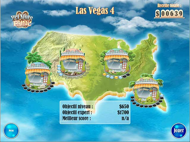Aidez Polly à relancer une chaîne de magasins d’animaux dans quatre villes des Etats-Unis. Les clients peuvent y acheter un animal (chat, chien ou lapin) ou bien l’emmener pour un service de toilettage. Grâce aux bénéfices obtenus dans les magasins, vous pourrez les améliorer en achetant de nouvelles machines et ainsi attirer plus de clients. - Pet Store Panic