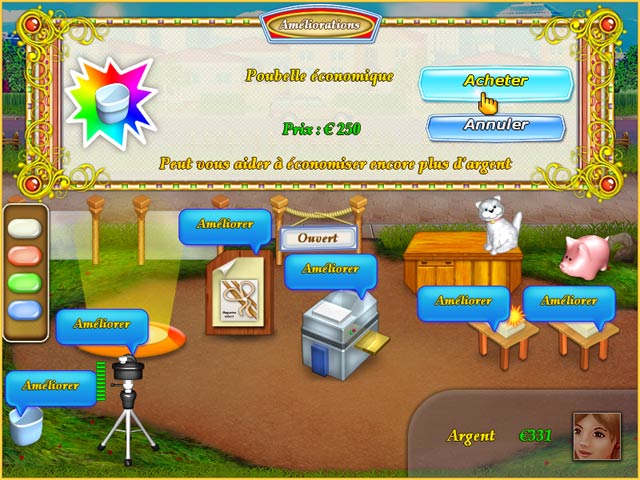 Dans Photo Mania, réalisez votre rêve de devenir photographe. La vie d'Ellie était monotone. Puis un jour, en se promenant dans le parc, elle trouva une annonce pour des leçons de photographie. Parfait ! Elle avait toujours voulu être photographe. Après des mois d'études, elle ouvre enfin son propre studio. Ce sera un peu difficile au début, elle devra démarrer en utilisant son jardin ! Utilisez vos revenus pour acheter de jolis cadres et de meilleurs équipements photo pour faire de votre studio un succès. - Photo Mania