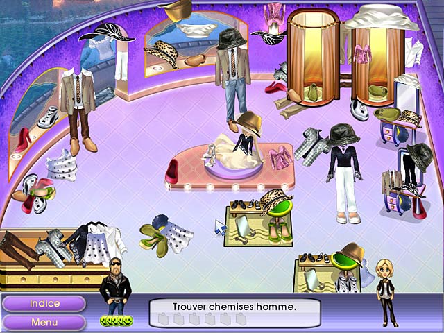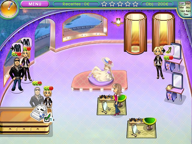 Retrouvez Alicia et faites de votre mieux pour satisfaire la clientèle, surtout les clients importants ! Déplacez-les vers la station d'essayage appropriée. Sélectionnez les tenues les plus chères pour faire des bénéfices et présentez-leur les accessoires adaptés. Faites passer ensuite les clients à la caisse et utilisez vos gains pour apporter des améliorations à la boutique. - Posh Boutique 2