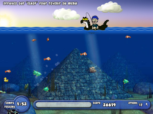Après avoir trouvé une carte au trésor dans une bouteille à la mer vous décidez de partir à la recherche du trésor des pirates. Attrapez des poissons et des pièces tout en évitant les prédateurs et autres obstacles. Activez votre poisson multiplicateur et collectez un maximum de cette espèce sur une même ligne. Plus vous attraperez de poissons plus vous approcherez du trésor ! - Reel Quest