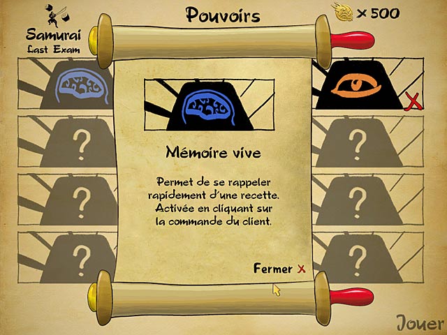 Pourrez-vous passer l'examen final du samouraï ? Découvrez-le dans ce jeu de gestion du temps de jeu goûtu ! Servez des sushis aussi rapidement que possible pour garder vos clients heureux et impressionner vos enseignants. Gardez l'oeil sur votre cuisine tout en tenant des conversations adaptées aux clients. Devenez un véritable samouraï en réussissant l'examen le plus complet et dur de votre vie ! - Samurai Last Exam