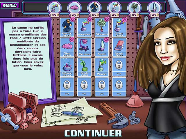 Aidez Shannon Tweed à repousser l’invasion de groupies avant qu’elles n’atteignent la scène de concert et se jettent sur son mari. Employez tous les moyens possibles pour leur faire rebrousser chemin grâce à un arsenal d’objets hétéroclites à débloquer au fil des niveaux. Découvrez les interviews farfelues des groupies à la conquête de leur star, et accédez à des albums photos en récompense de vos exploits dans Shannon Tweed et l’Attaque des Groupies ! - Shannon Tweed et l'Attaque des Groupies