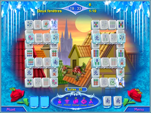 Découvrez un adorable petit village et accompagnez Greta à la recherche de son frère disparu. Il a été kidnappé par la diabolique Snow Queen, et vous devez regrouper les tuiles de mahjong similaires pour faire fondre la glace et le libérer. Déplacez-vous en suivant la carte jusqu'au château de la reine et visitez six pays époustouflants. Snow Queen Mahjong est rempli de modes de jeu classiques, trois niveaux de difficulté et des revirements passionnants. - Snow Queen Mahjong