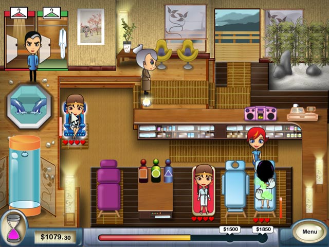 Jade milite en faveur des animaux contre l’industrie cosmétique. Après être défiée par Madame Dubois, l’impératrice de l’industrie cosmétique, Jade rêve d’ouvrir son propre salon écolo. Elle doit d’abord apprendre les ficelles du métier en offrant un service 5 étoiles à San Francisco. Utilisez vos talents de gestion du temps pour bichonner vos clients avec des massages, des masques de boues ou du thé au ginseng. Pourrez-vous faire face à la demande et satisfaire les clients les plus exigeants ? - Spa Mania