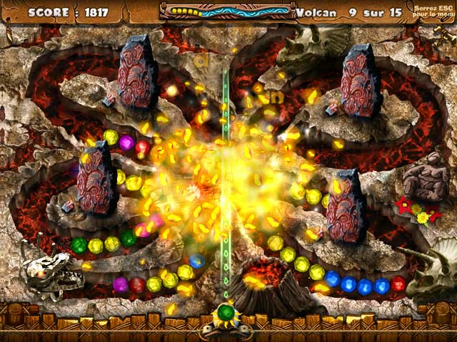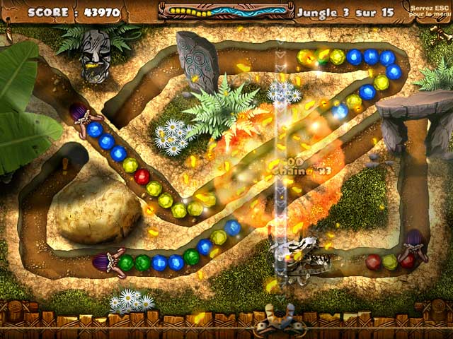 A vous les grognements de dinosaures, les rochers écrabouillés et les acclamations rocailleuses dans le monde de Jurassica. Seul un explorateur courageux traversera les cinq royaumes de Jurassica. Parcourez la jungle jusqu’à un immense glacier et avancez à coups de lance-pierre jusqu’à un volcan en éruption. Gagnez cinq maisons et collectionnez des trophées dans ce jeu de destruction de billes qui vous fera trembler de plaisir. - Stoneloops! of Jurassica