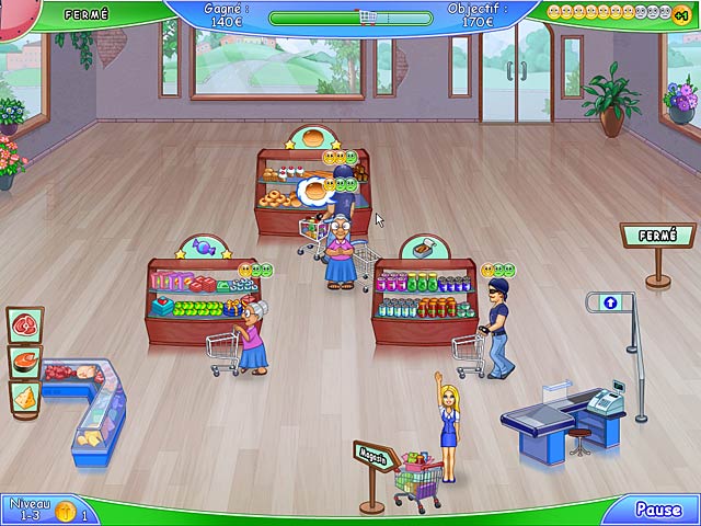 Apprenez à gérer votre petit magasin local pour devenir gérant de votre propre supermarché. Aidez un maximum de clients à faire leurs courses dans les temps impartis en les dirigeant vers les allées bien remplies de votre établissement afin de maintenir une côte de satisfaction élevée. Investissez dans des améliorations et embauchez du personnel qualifié pour augmenter la qualité de votre service client et gérez avec succès votre propre magasin dans ce jeu de gestion du temps passionnant. - Supermarket Management 2