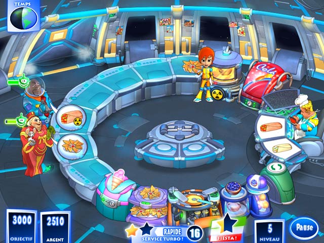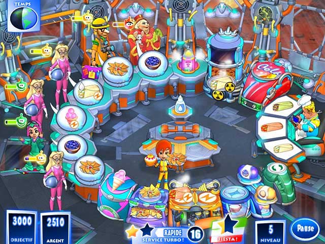 Troisième jeu de la série Turbo, Turbo Fiesta est une aventure astronomique et gastronomique vraiment hors du temps ! Servez des clients interplanétaires à des milliers de kilomètres de la Terre et observez votre empire culinaire décoller comme une fusée. Aidez Rebecca et Robert à faire de leur fast food le meilleur restaurant de la galaxie. Attachez vos ceintures, ça va secouer ! - Turbo Fiesta
