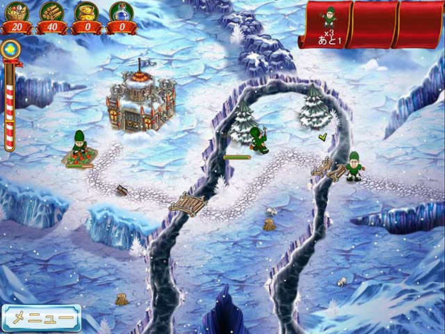 英語版タイトル:New Yankee in Santa's Service モンスターの大群との激しい戦いにまきこまれ、勝利をおさめたジョンとメアリー。そして家路につこうとしたそのとき…ドカーン!!帰るための呪文を間違えてなぜかサンタクロースの家の前に飛んでしまった。爆発音に驚いて逃げてしまったトナカイたちを連れ戻さなければ今年のクリスマスプレゼントを届けることができない!二人はサンタクロースに暖かい服をかりて助っ人のエルフたちと一緒にトナカイ探しの旅にでることに…。資材を集めて壊れた橋の修理や凶暴な雪だるまから身をまもる防衛塔など、役に立つ建物を次々に建てていこう!トナカイを救出して無事にクリスマスを迎えることができるかな? - ナイト・カウボーイ:サンタのトナカイ救出作戦