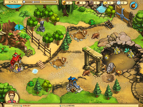 英語タイトル:The Beardless Wizard ある日偉大な魔法使いゴッドゴリーと唯一の弟子であるユージーンは森で魔法の練習をしていた。そこに突然悪い科学者オイゾが巨大ロボットに乗って現れゴッドゴリーを連れ去ってしまった!ユージーンはさっそく師匠を助け出す旅に出ることにした。旅の途中で仲間を集めてそれぞれのキャラクターのスキルを使って資源を集めたり、建物を建てたり、タスクをクリアしながら進めていくゲーム。さまざまな魔法を使いながら効率良くプレイしよう! - おヒゲがない魔法使い