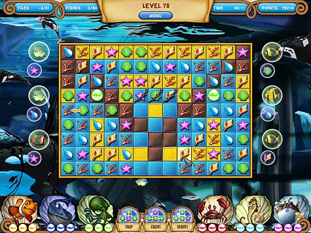 Experience a fantastic underwater match-3 adventure and save the ocean! Befriend a clever clownfish, a nimble seahorse, a cuddly blowfish and a crab with a "dynamite" personality, and help your fishy friends save their endangered home. Six exciting maritime missions dare you to complete challenging, fast-paced match-3 levels like never before. Use potent power-ups and become the "Savior of the Seven Seas" while puzzling through tons of mini-games! - Atlantic Quest 2: The New Adventures
