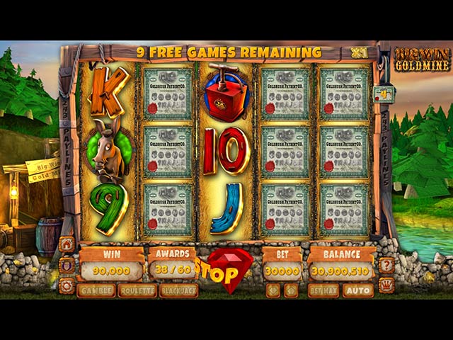 Y'all will shout YEE-HA when you win big in Big Win Goldmine Slots! With 243 pay lines and glorious imagery, it's the finest slot game available! Double up, blackjack and roulette are built right in for sensational extra fun to try and increase your wins. Earn extra cash with the funtastic Donkey Dash for Cash Jackpot which will be triggered randomly during free games. If your donkey wins the race, you are awarded a single share certificate, which can be used to rustle up a PICK A FEATURE bonus! Can you win all 60 fun awards? Try it now and see! - Big Win Goldmine