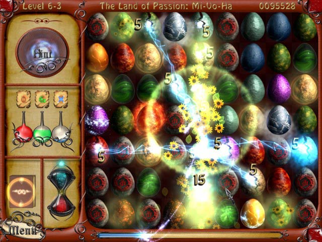 Match 3 or more similar dragon eggs to unlock powerful spells and other power-ups. Move the rows and columns to chain together matches, and fill up your magic meter to clear the level. Learn about an adventurers experience with dragons, and unlock gorgeous wallpapers for your desktop as you progress through The Book of Wanderer: The Story of Dragons. - The Book of Wanderer: The Story of Dragons