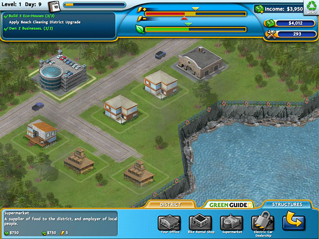 Help the inhabitants of a tropical island protect their homes and go green in Build it Green: Back to the Beach, a fun Time Management game! Build environmentally friendly housing, investigate alternative fuels and upgrade your facilities with the latest green technology. Protect the beauty of the island and enjoy the relaxing atmosphere, all while making a perfect paradise getaway. - Build It Green: Back to the Beach