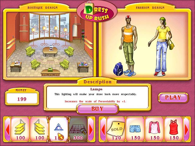 Imagine running your own fashion boutique with cozy chairs, hot coffee, and ambient music. Meet Jane, a savvy fashionista, determined to make a name for herself in the fashion biz. Start small and provide top-notch service to clients - then upgrade your boutique with more fitting rooms, a sleeker design, and a fat cash register. Sell the hottest collections and offer 130 distinct clothing options to customers. Can Jane manage the Dress Up Rush in this Time Management venture? - Dress Up Rush