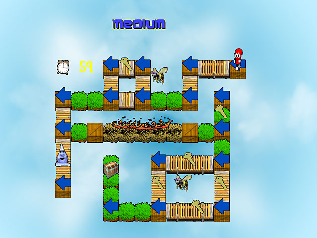 Join Dyno Kid in this action-puzzle game as he heads out on an adventure to find treasure. Meet wacky characters along the way, like Barny the Bee and Percy the Pumpkin. Help him move him through the map to aid in his search for the ultimate prize: The Diamond of Destiny. Just don't let him get off course! - Dyno Kid