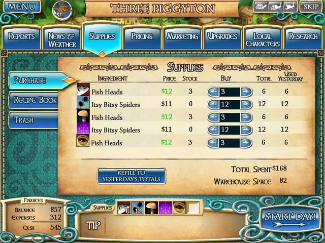 Climb the ranks of the Fairy Godmothers operation in this unique, easy-to-play game featuring cheeky new takes on fairytale favorites. Set up shop in different villages across the land. Check the weather forecast each day to find out which curses will strike the peasant village. Buy supplies and upgrades to create magic potions, set your prices, manage your inventory and hire contractors to help move your product. Sell your potions at top dollars and put the competition out of business. Start building your empire in Fairy Godmother Tycoon today! - Fairy Godmother Tycoon