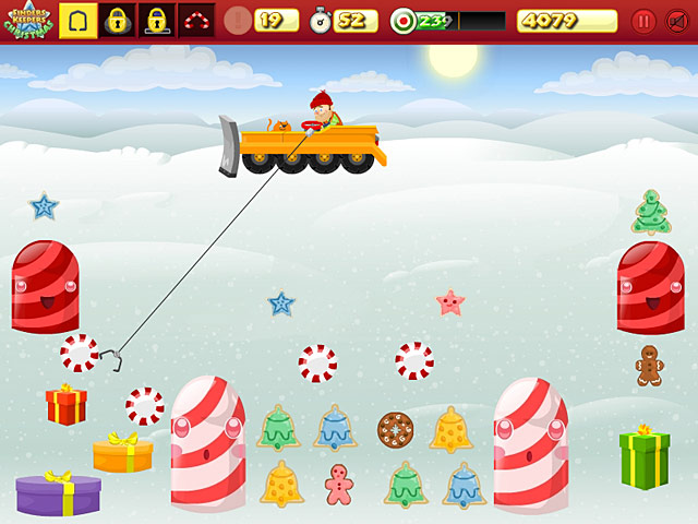 Floyd and Goldie are back for another adventure in Finders Keepers Christmas. It's Christmas time and this treasure hunting team is off to help Santa deliver sweet treats. Use the claw to pull up sugar cookies, gingerbread men, and other goodies for the kids. The game features four fun areas including Peppermint Tundra and Twilight Mountain. And as you progress, you'll gain special access to three brand new claws to help you on your Christmas adventure. - Finders Keepers Christmas