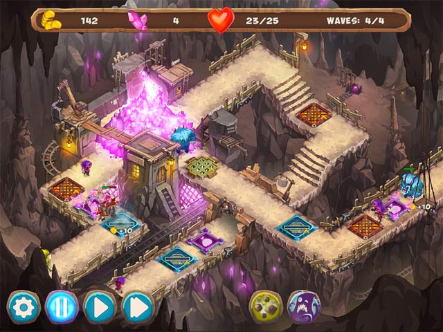 Build the ideal chain of traps using magic and the powers of the elements in Gnumz: Masters of Defense! An unknown mineral has been found in the depths of the dwarfish caverns, more valuable than gold and harder than steel. This find quickly turned sour as The Wicked King laid siege to the underground cities ordering their inhabitants to give up their entire supply of the wonderful ore. Battle in the depths of the Iron Mountain, in the cold of the Icy Halls, in the hellish fire of the Crucible and among the secrets of the Shadow Frontier. Defeat the army of The Wicked King! - Gnumz: Masters of Defense