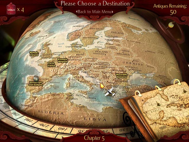 Priceless antiques have been stolen and hidden throughout Europe. The Professor calls upon her star student Adrianna to help her retrieve stolen antiques. You will help Adrianna evade the evil thief as she travels Europe to locate the stolen antiques. Along the way you'll be able to get gadgets that help you uncover secret priceless artifacts from Mr. Gadget after solving fun puzzles. - Hidden Relics
