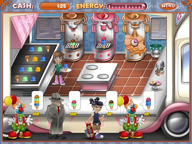 Many years ago, a mysterious tycoon started BigCo and quickly became the dominant ice cream maker. Anna has decided to start selling ice cream and take on BigCo, but needs your help to scoop and serve her way to success! Ice Cream Craze: Tycoon Takeover puts you inside of Anna’s old ice cream truck as she works her way to the top. Purchase upgrades to serve more customers in this exciting Time Management game. - Ice Cream Craze: Tycoon Takeover