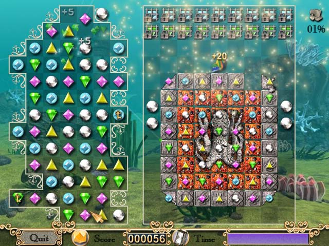 Explore a newly-uncovered ancient continent to search for valuable treasures and relics. In this breakout-style puzzler, get help from an in-game map showing various roads and pathways to travel. Solve puzzles and sink below the deep sea to witness exciting adventures in mystical places like the Sacred Temple, Ship Wreck, and Sunken Volcano. - Jewel of Atlantis