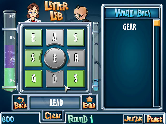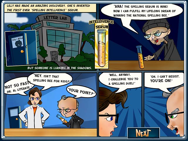 Lilly has invented the first ever spelling intelligence serum, but the evil Dr. Al Literate wants to steal the formula. Help Lilly match wits with the doctor and foil his plan to win the national youth spelling bee. Test the alphabet formula in the Letter Lab with two distinct modes. Use nine letters to create as many words as possible in this funky, arcade-style word game. - Letter Lab