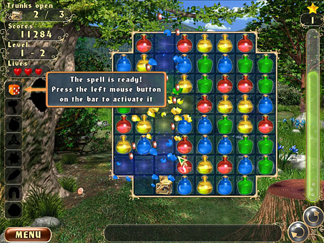 Match colored objects in such a way you bring together a treasure chest and a golden key. When all of the chests are unlocked, you've won the level and will be rewarded with a cherished faiytale. Collect stars to purchase upgrades and bonuses, including Time Freeze, Chaos and Hammer. Play strategically to bring together all of the chests and keys on a level before time runs out. - Magic Tale