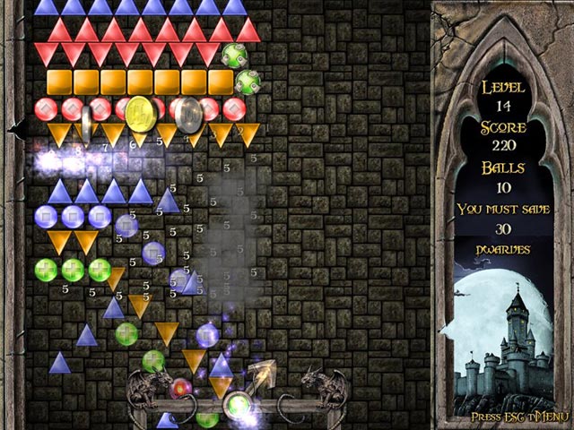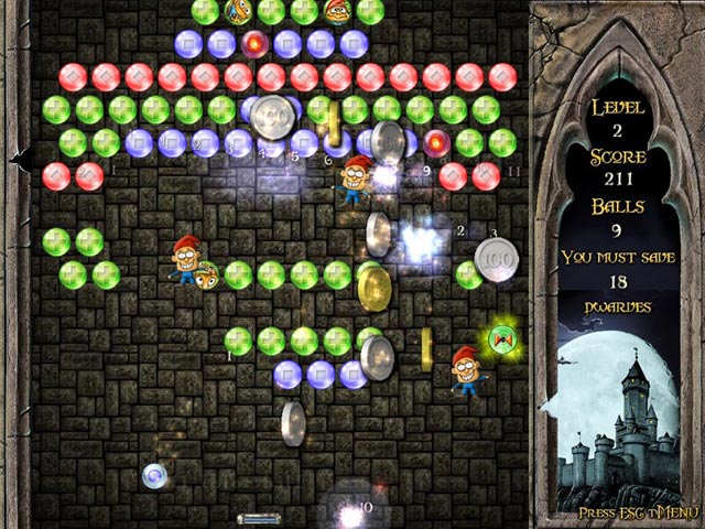 The cruel wizard used all his power and imprisoned all of the dwarves from a wonderfull forest called Phantasia, in his strange tower in the abandoned mountains. You are the only one who can rescue all of the dwarves from the wizard's tower. Three unique game modes classic, arkanoid and bust-a-move. The modes are so different that actually these are 3 different games altogether and three times as much of fun in one game. Each level is specific and you have to change your tactics often. - Phantasia II