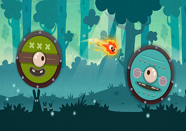 Pyro, the little flame, is burning with love for the princess and is willing to do anything to convince her that this romantic idyll is not destined to go up in flames! Leap from one wheel to another and try to catch Princess Paper! In each level, collect all the flames and unlock bonus levels. Complete the levels without any faults and try to win the gold timers. Help Pyro catch Princess Paper! - Pyro Jump