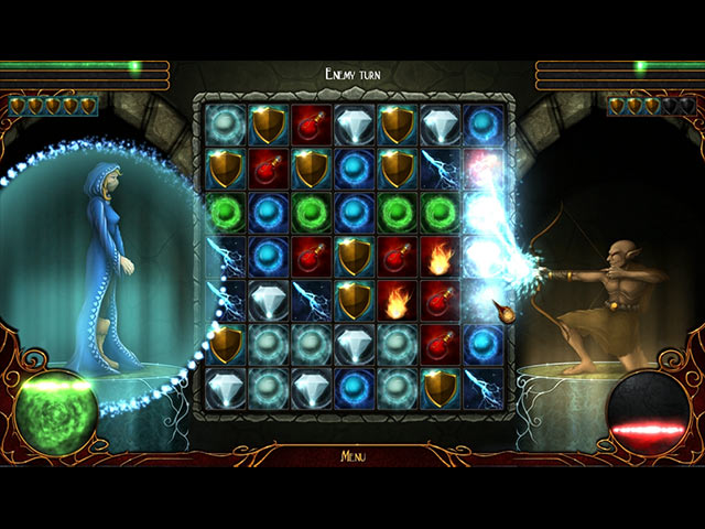Join the mysterious Sorceress on her quest to the Frozen Mountains to discover the secret to immortality, in this entertaining and challenging Match 3 quest! Throughout the journey you'll come up against a host of deadly denizens and fierce foes, each with their own set of magical skills just waiting to challenge you. If you can defeat them with your skills and Match 3 might, you might one day reach the Frozen Mountains to claim your reward. But be warned there are choices ahead of you on your journey and which path you take will ultimately determine your fate! - Quest of the Sorceress