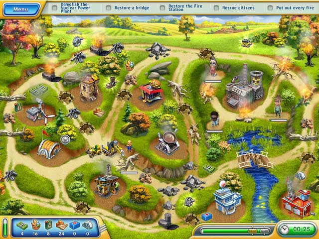 Go on a Rescue Frenzy in the aftermath of devastating storms, catastrophic earthquakes, and disastrous wildfires! Race against the clock to clear away debris; collect resources for rebuilding hospitals, bridges and power stations; and save people and animals from certain peril. Collect power-ups to increase your speed, steer seven powerful vehicles over rugged terrain, and strive for the Master ranking in this fun Strategy game. - Rescue Frenzy