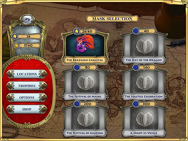 Become a real detective of the Ancien Régime! The most beautiful places of the world will spin you around in the melodies of carnivals and leave you with indelible impressions of visiting these renowned festivals! Complete 120 unbelievably entertaining levels and collect a multitude of trophies while experiencing an enchanting 18th century carnival atmosphere! - Riddles of The Mask