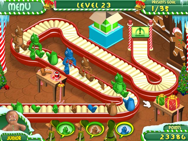 Find out who Mr. Stink is and why he would steal all the toys right before Christmas. As you make your way from Candy Cane Cove to Santa`s Workshop, you`ll meet some Super Friends along the way like Gingerbread Jr. and Edmund the Elf. They`ll give you information about Mr. Stink to help you get the toys back! With 60 progressively harder levels of play, 3 skill levels to choose from and even your very own Christmas Tree ornaments to collect you'll be instantly hooked! - Santa's Super Friends