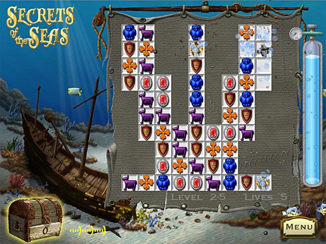 Discover sunken shipwrecks and explore the mysteries of one of the world's greatest lost treasures: the Crown of the Last Inca King. Secrets of the Seas takes you on a journey of discovery as you match ancient relics to unlock each level. Choose between playing against the clock in Adventure Mode or use your best strategies to beat the Untimed Mode. This unique game combines the best elements of some of your favorite games. Unlock the Secret of the Seas today! - Secrets of the Seas