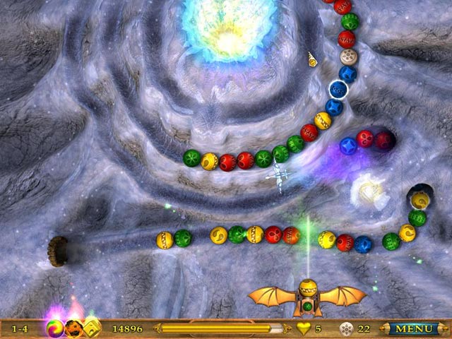 Strategy and action come together like never before in this exciting Marble Popper! An evil dragon has stolen one of the gems required to keep the Sky Kingdom afloat, and now it`s up to you to get it back! Use special upgrades and unique powerups to pop your way through this fantasy world. Chase the evildoer through challenging levels and prevent the Sky Kingdom from falling by retrieving the missing gem! - Sky Kingdoms