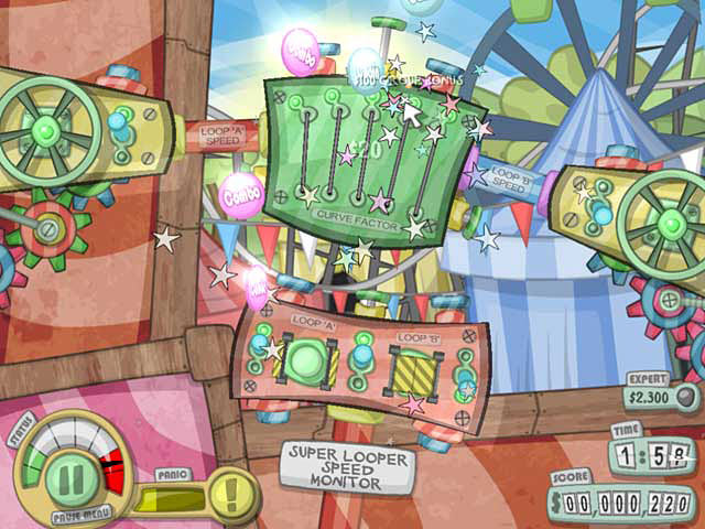 In System Mania, you help Fiona realize her dream of running her very own fix-it shop. This fast paced Time Management game has Fiona Keeping over 80 crazy machines running smoothly by quickly turning their red warning lights off. Each machine is made up of various fun and wacky controls such as cranks, pull cords, guitar strings, egg timers, gearsticks and even a TV game system complete with its own joystick. Be quick or the whole thing will go up in smoke! - System Mania