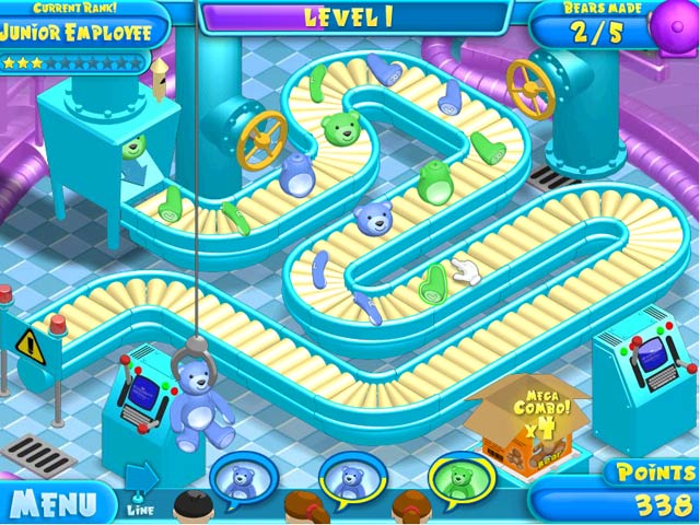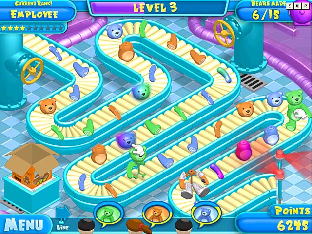 Try your skills in a factory! In this cut throat toy industry it's a wild mix of matching and precision aiming, all with the drive of constant orders. And oh, those demanding customers! How far can you climb the Corp ladder at the local Teddy Factory? Will you get that promotion? Can you move on to bigger and better Toys? Bigger and better Factories? Try to find out! - Teddy Factory