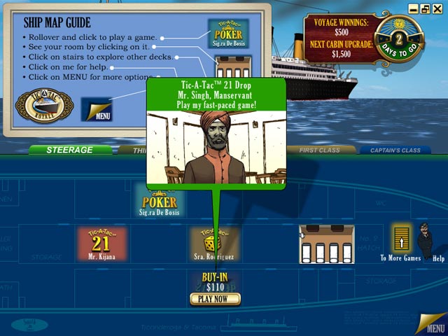 Prepare to set sail aboard the S.S. Tic-A-Tac Royale as you strike out for a new home and a new life. Can you change your future and build your fortune, playing Tic-A-Tac( TM ) with your shipmates, before you reach your destination? The games in Tic-A-Tac( TM ) Royale combine Tic-Tac-Toe with casino games to create hours of card playing fun. Play well enough and you can transform yourself from a mere pauper to a millionaire! - Tic-A-Tac Royale