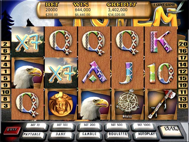 The Totem smiles upon you four times as you accumulate great wins in the much-acclaimed slot machine game. Howl at the moon as you win during the triumphant Dreamcatcher Feature. Lock in your Gold Totems for a chance to cover all reels with wildcards. Top it off with the Mystical Totem feature - where you can multiply your entire win a massive 256 times! How lucky are you? Try it now and see! - Totem Treasure