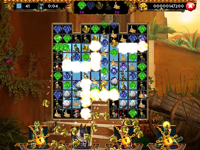 In the land of the Pharaohs, where Ancient Egypt is the most powerful force in the world, the balance of power between good and evil is under threat. Dark forces have kidnapped the beautiful High Priestess Iset and they plan to overthrow the Pharaohs with the help of a mysterious artefact and the power of Ra - The Sun God! As the Pharaoh’s guard, embark on a dangerous and perilous quest to rescue the Priestess. Journey across Egypt, amongst the pyramids and temples! Packed with unique bonuses, glorious gems and 100 levels of pure jewel matching fun, Treasures of Egypt is more stunning than Cleopatra and more dangerous than an Egyptian Curse! - Treasures of Egypt