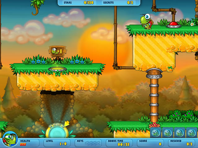 Help a heroic turtle navigate three gorgeous game worlds dripping with detail. Block the bad guys on their mission to capture toddler turtles in this side-scrolling Arcade game. Use your brain to eliminate traps and obstacles while crushing dozens of enemies with crates. Navigate 60 wondrous worlds with loads of puzzles while collecting bonuses and power-ups. Can you recover the baby turtles in Turtix 2 Rescue Adventure? - Turtix 2: Rescue Adventures