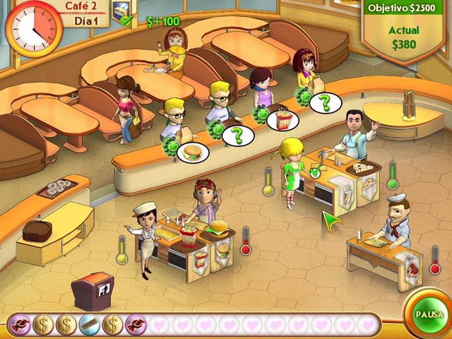 El abuelo de Amelie está de vacaciones y le ha dejado a cargo de su café. El negocio que hace tiempo era famoso, ahora se encuentra en mal estado y depende de ti devolverle la gloria y la fama. ¡Prepárate para atender clientes y encargar pedidos en Amelie´s Cafe, un frenético desafío de Gestión del Tiempo que te dejará con ganas de más! Desde hamburguesas a platos combinados, de ti depende satisfacer a todos tus clientes y conseguir fantásticas propinas. ¡Horas de trepidante diversión te aguardan! - Amelie's Cafe