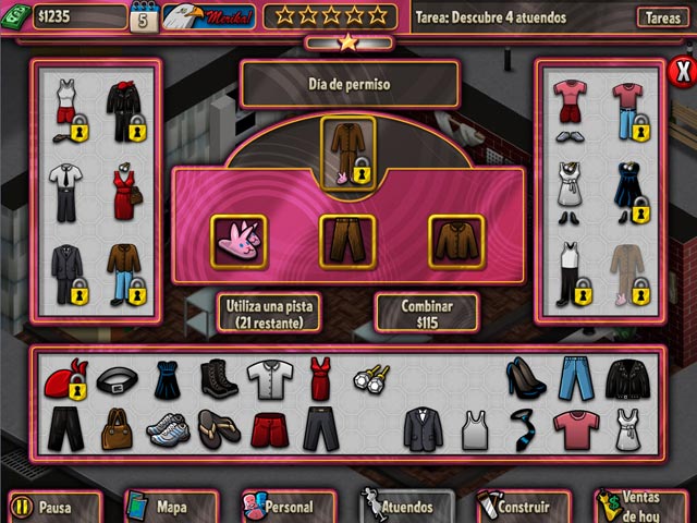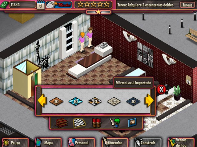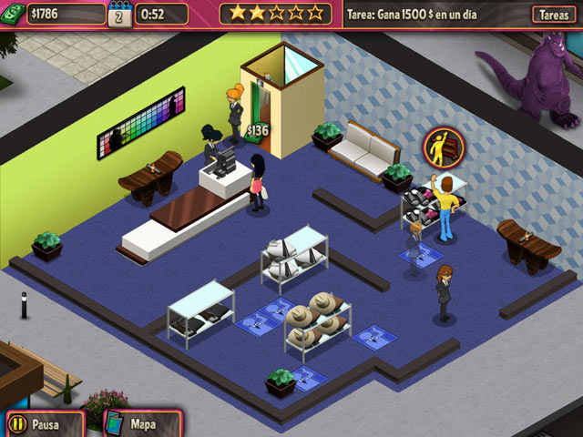 ¡Convierte una tienda pequeña en una pasarela de moda! Contrata al personal, elige la ropa, decora la tienda e impresiona a los clientes. Experimenta con las telas y los colores y descubre nuevos atuendos. Entrena a tu personal para mejorar sus habilidades de atención al cliente, ventas y más. Decora la tienda a tu estilo con cientos de artículos a escoger. Todo depende de tu preferencia en este emocionante juego de gestión del tiempo que ¡simula el negocio de la venta de ropa! - Boutique Boulevard