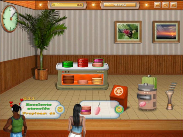¡Acepta el delicioso desafío de Cake Shop! Trabaja duro en este juego de Gestión del Tiempo para tener contentos a todos tus clientes con sabrosos pasteles. Gestiona la paciencia de los clientes con café caliente para ellos y algodón dulce para sus hijos. A medida que vayas progresando y tus habilidades como gerente aumenten, podrás invertir en mejoras e incluso construir la casa de tus sueños en la que descansar tras un largo día de trabajo. ¡Deliciosa diversión te está esperando en Cake Shop! - Cake Shop