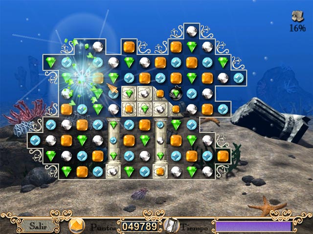 Explora un antiguo continente recientemente descubierto para buscar reliquias y tesoros valiosos. En este puzzle al estilo de romper bloques solicita la ayuda del mapa que hay en el juego para mostrarte los caminos y senderos por donde viajar. Resuelve puzzles y sumérgete en las profundidades marinas para vivir emocionantes aventuras en lugares místicos como el Sagrado Templo, el Barco Naufragado y el Volcán Hundido - Jewel of Atlantis