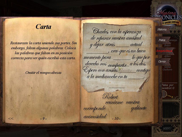 En 1899 la ciudad de Lyon, Francia, fue escenario de un misterioso asesinato. Sigue la pista del asesino y resuelve desafiantes rompecabezas para poder detener el terror. Entra en bibliotecas, museos, cementerios y alcantarillas en busca de objetos ocultos y pistas. Pon a prueba tus dotes detectivescas. ¡Qué no te engañe la falsa sinceridad! Mystery Chronicles: Asesinato entre amigos te dejará sin aliento… - Mystery Chronicles: Asesinato Entre Amigos