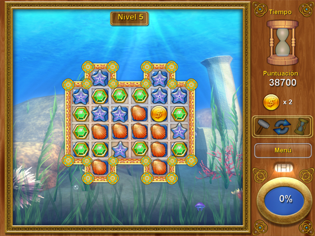 Sube a bordo de un gran submarino y surca el océano. Recoge tesoros y monedas formando grupos de 3 o más objetos. Ponte en marcha y consigue potenciadores como el pececillo y la dinamita para mejorar tu puntuación. A bordo del submarino un valiente capitán te ayudará a navegar en este acuático juego. ¡Sumérgete en las profundidades del mar con OceaniX, un juego pasado por agua! - OceaniX
