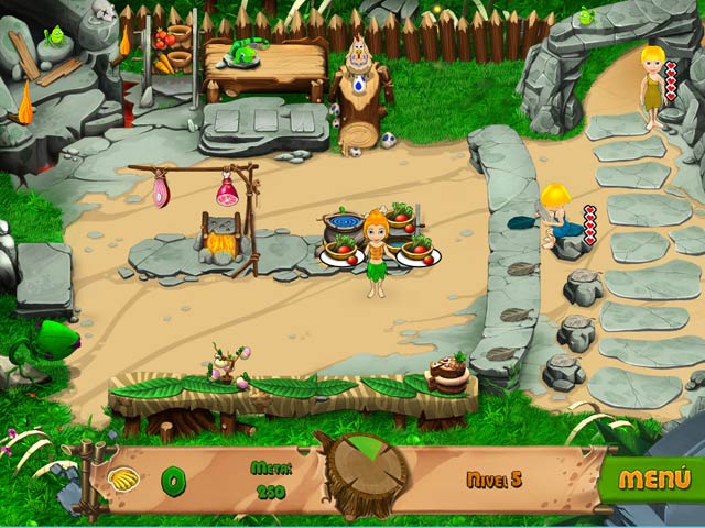 Maneja tu propio restaurant de la edad de piedra en: Stone Age Café y ¡salva a tu tribu del hambre! El chamán de la tribu ha develado el destino de Lucy: ella se convertirá en la cocinera de la tribu. Lo que ella no sabe es que, como una simple cocinera, no solo preparará platos, sino que además ¡cambiará el destino de toda una tribu! Dirige el Stone Age Café y logra salvar a toda su tribu en este increíble juego de Gestión del Tiempo. - Stone Age Cafe