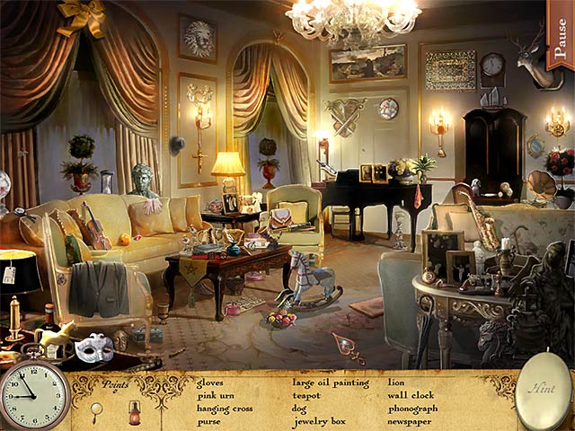 Emily se rend dans la boutique de son défunt Oncle Jack où elle y trouve un mystérieux journal. En effet, ce journal indique les dates de naissance et… de décès de personnes. Que cela signifie-t-il ? À travers chaque lieu et scène d’objets cachés, vous trouverez davantage d’indices et de significations sur les personnes dont le nom figure sur ce livre. Ce jeu d’objets cachés sans voix off vous offrira de nombreux défis à relever pour comprendre la vérité. - Antique Shop: Book of Souls